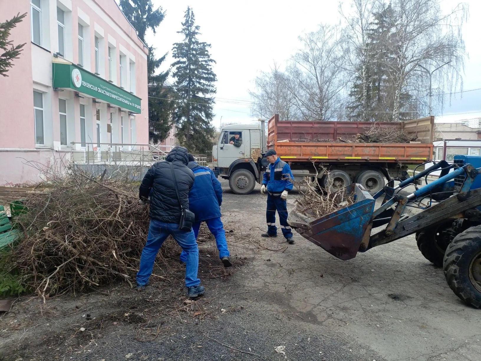 Но не только техника трудится на благо чистоты! Сотрудники областной больницы активно включились в процесс. Уже проведена обрезка веток, что не только улучшает внешний вид территории, но и повышает безопасность. Собран мусор, который мог накопиться за зимний период.