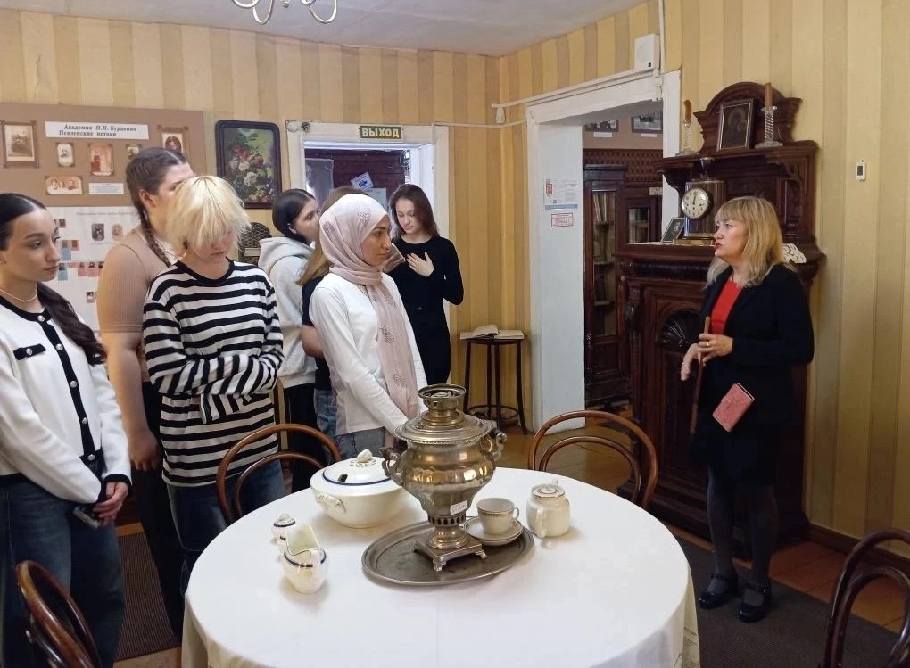 Далее студентов познакомили с жизнью и работой Никола Ниловича Бурденко, чье имя носит Пензенская клиническая областная больница. Заведующая Домом-музеем Н.Н. Бурденко Ольга Бабкина подробно рассказала о творческом пути и заслугах нашего великого земляка.