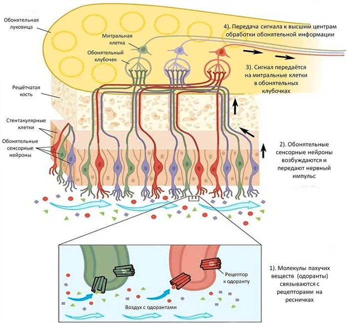 Также на качество обонятельного процесса влияет наличие субтрофических изменений слизистой, которые вызываются заболеваниями, например, ринитом, который тоже будет вызывать гибель обонятельных рецепторов.