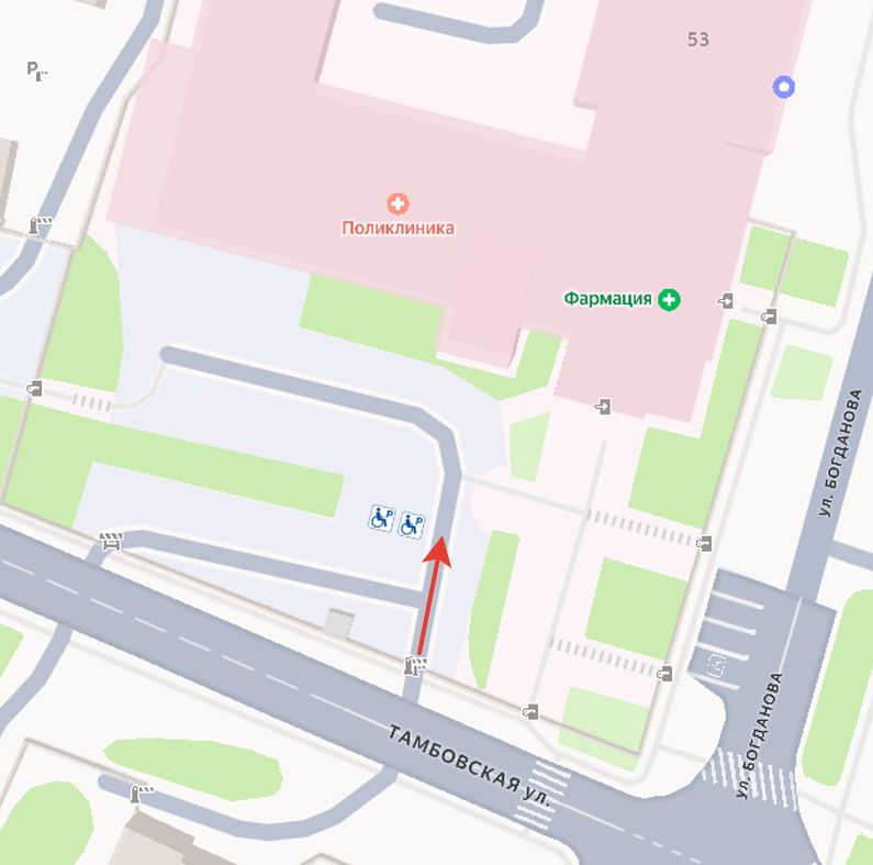 Схема парковки для инвалидов по адресу г. Пенза, ул. Тамбовская/Богданова 32/53А