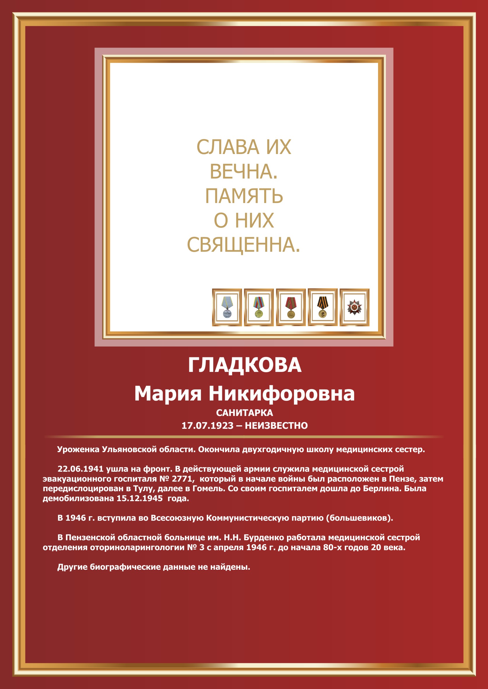 - ПОЛОЖЕНИЕ о галерее памяти «Золотые имена» ГБУЗ «Пензенская областная клиническая больница им. Н. Н. Бурденко» [Скачать оригинал]