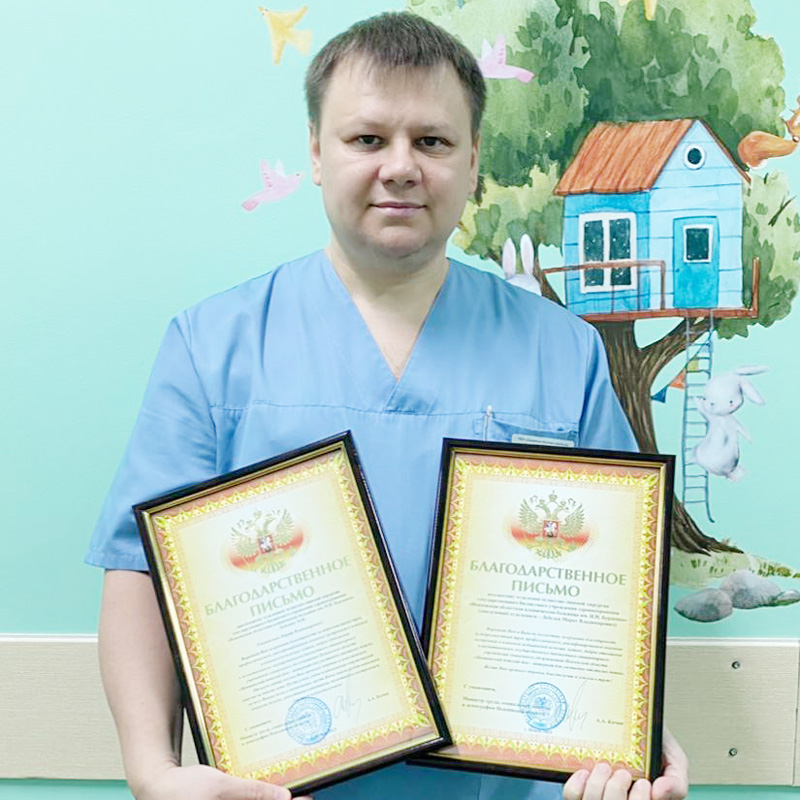 Заведующему отделением челюстно-лицевой хирургии государственного бюджетного учреждения здравоохранения «Пензенская областная клиническая больница им. Н.Н. Бурденко» Лебедеву Марату Владимировичу и коллективу отделения челюстно-лицевой хирургии от Министра труда, социальной защиты и демографии Пензенской области.
