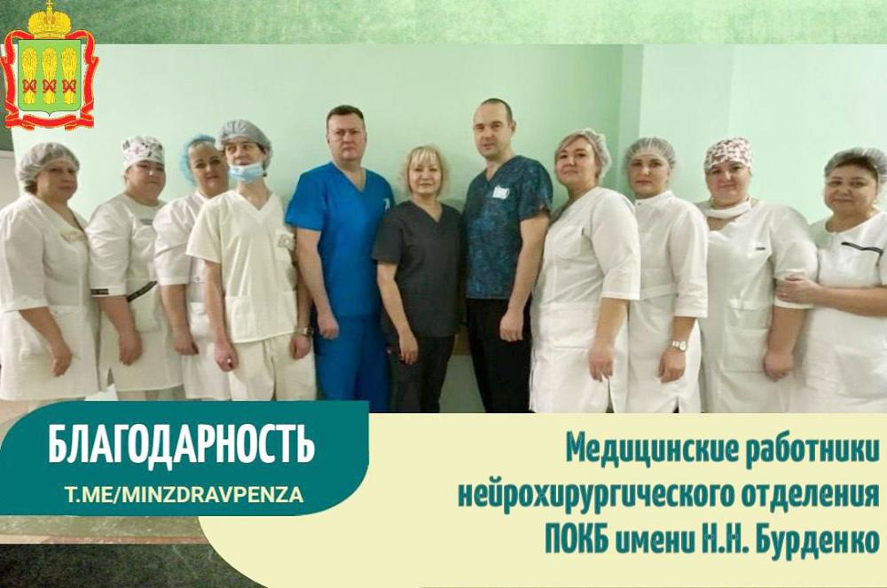 Выражаю отдельную признательность заведующему отделением Рыбас Роману Владиславовичу и оперировавшему меня врачу-нейрохирургу Зиновьеву Павлу Дмитриевичу. Эти люди – гордость пензенского здравоохранения!»